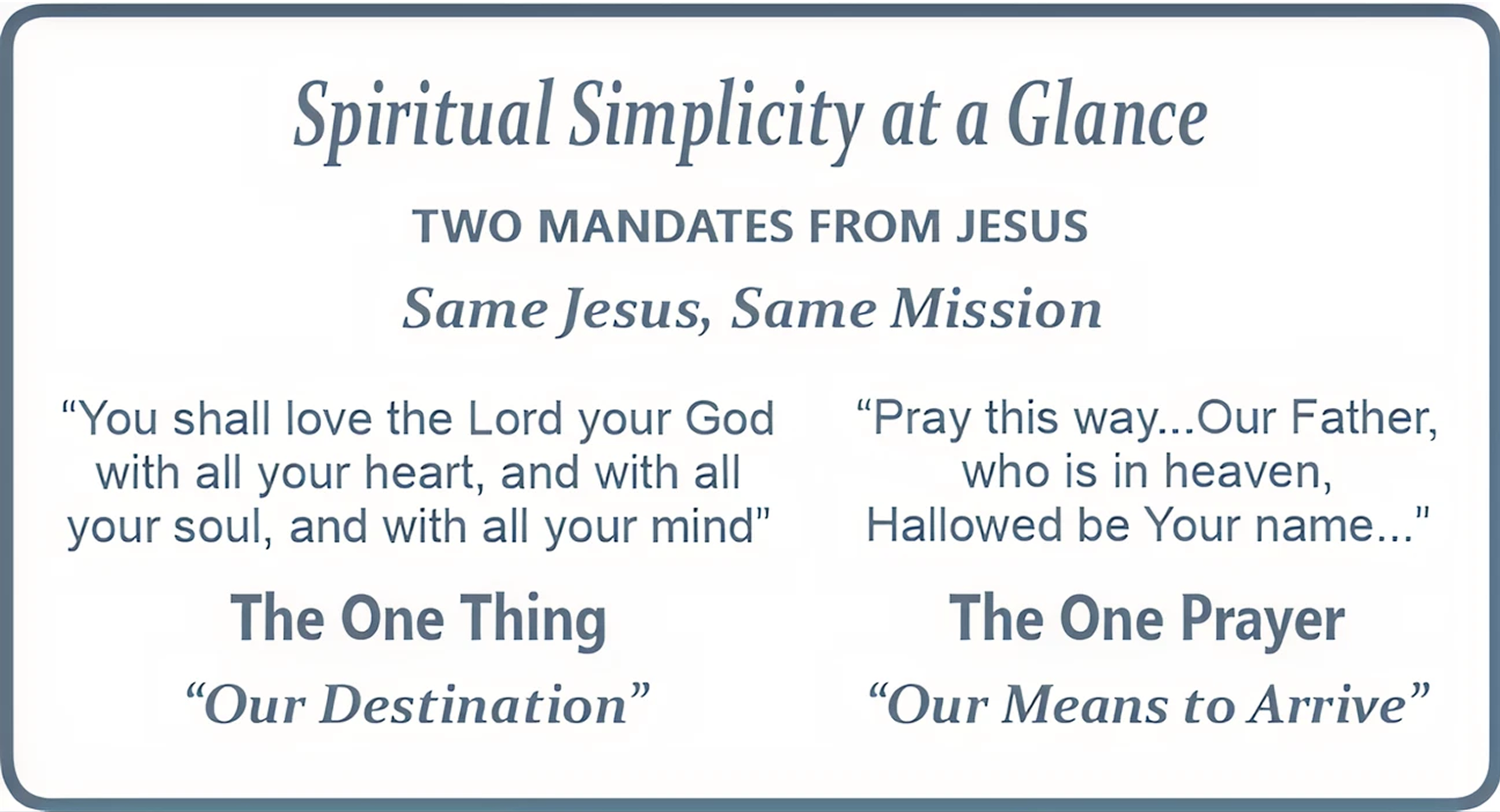 SpiritualSimplicity Ministry resources, developed by Allen Ratta, are rooted in Scripture and designed for individuals, small groups, and churches desiring to establish the life-changing rhythm of daily prayer to grow in THE ONE THING—God’s love.